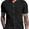 Men’s Casual Short Sleeve Knit Textured Button Polo Shirt – Stylish and Breathable Design for Everyday Wear