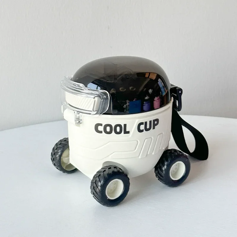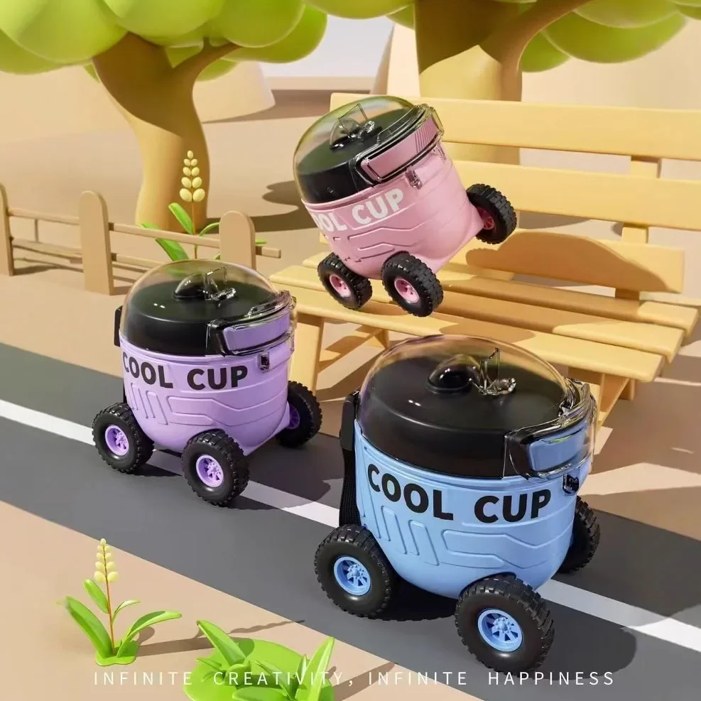 Seaygift Summer Hot Sale Cartoon 550ml Fun Toys Cool Car Shaped Plastic Water Bottle with Wheel Baby Drink Cup with Straw