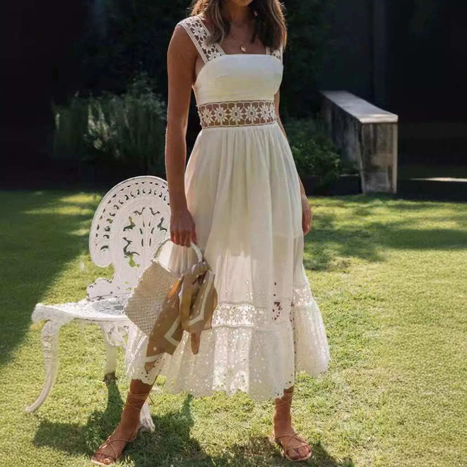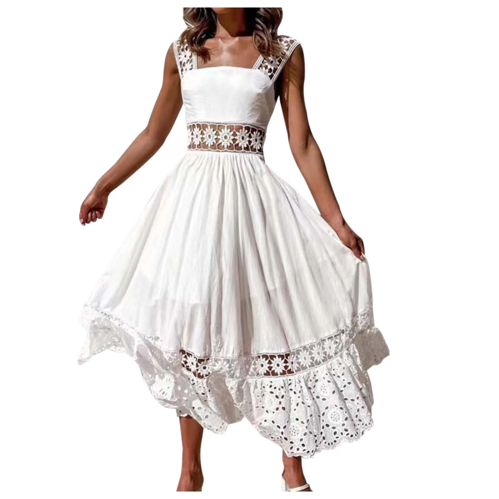 Elegant Women’s Lace Sleeveless Patchwork Long Dress – Perfect for Summer Parties and Weddings