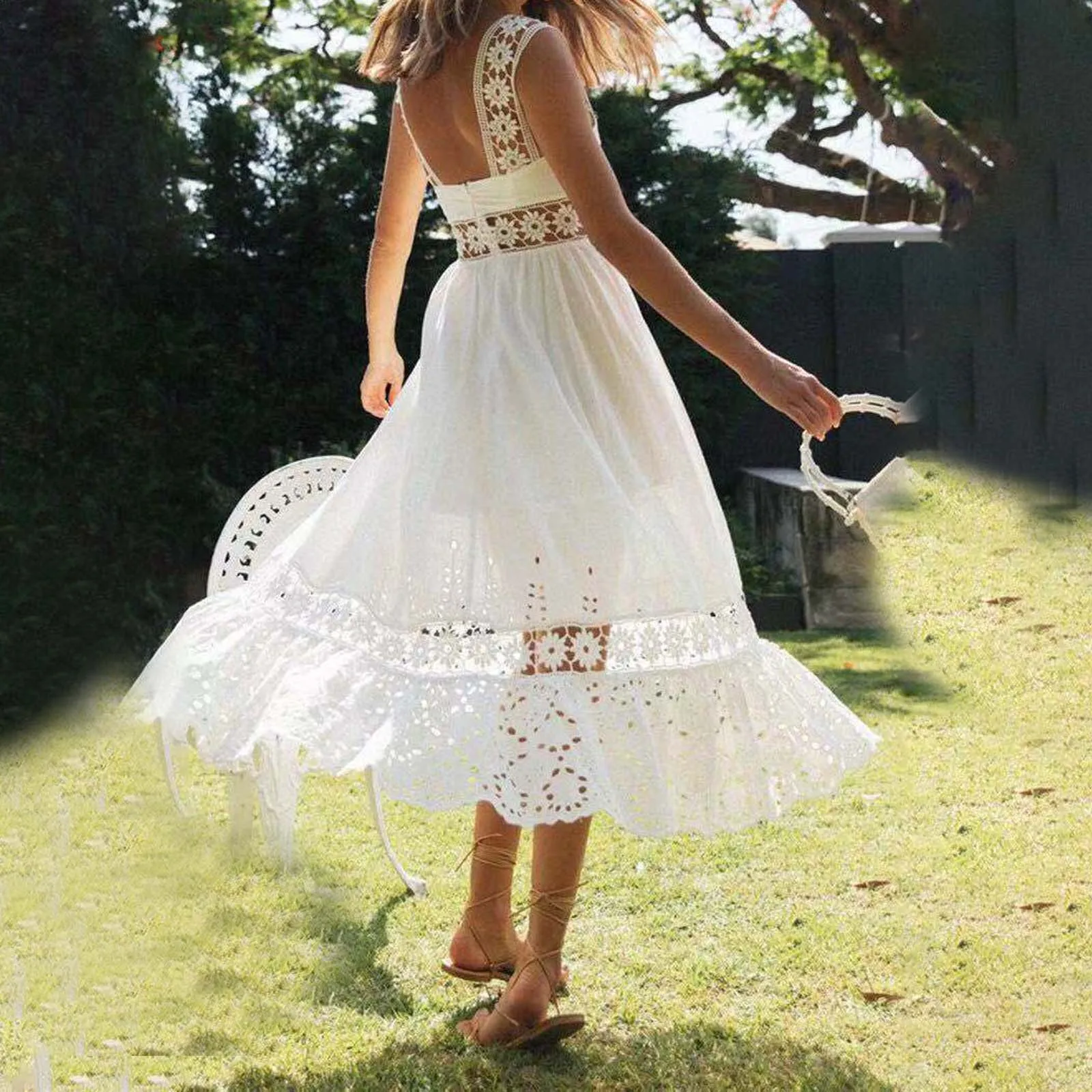 Women Lace Sleeveless Elegant Summer Maxi Dress