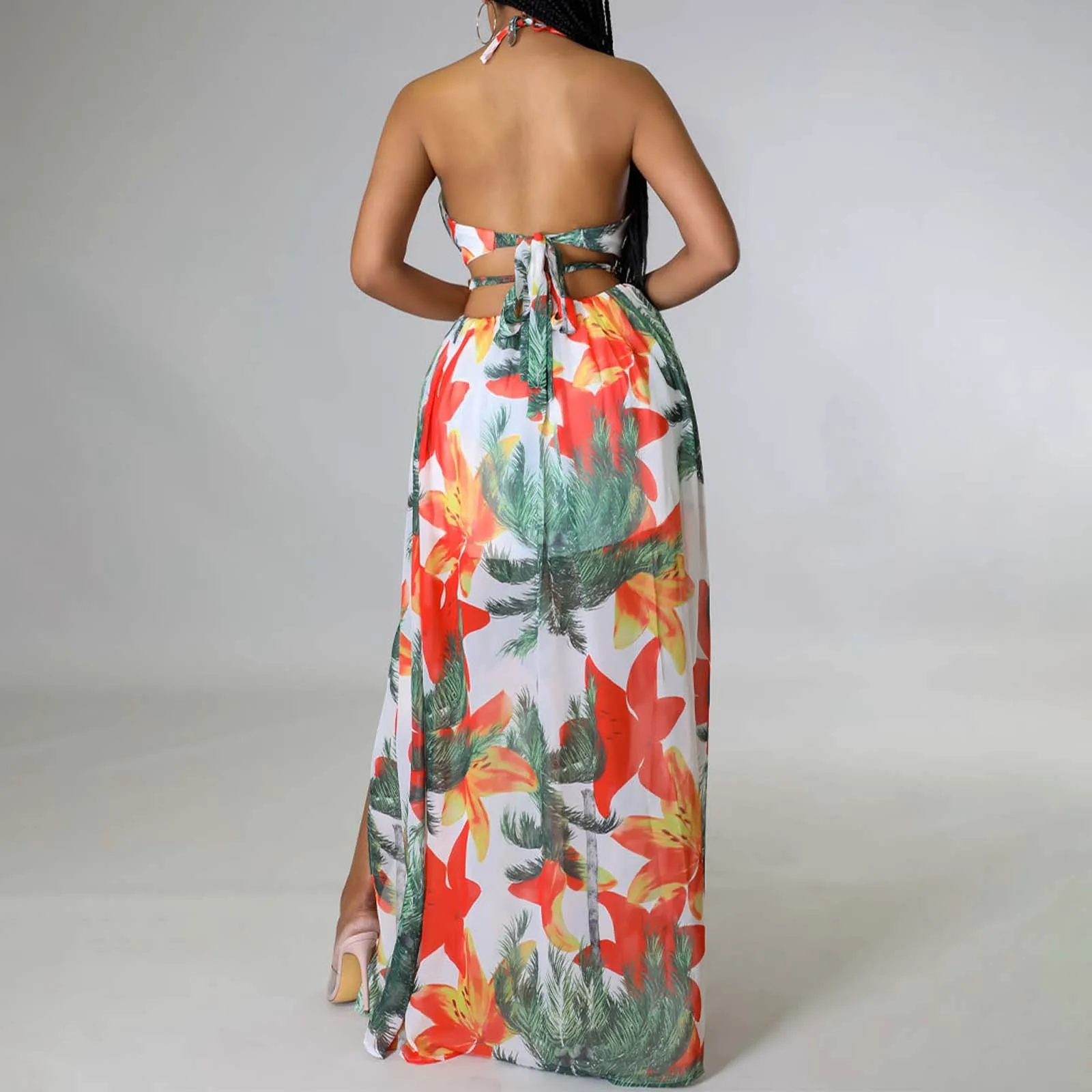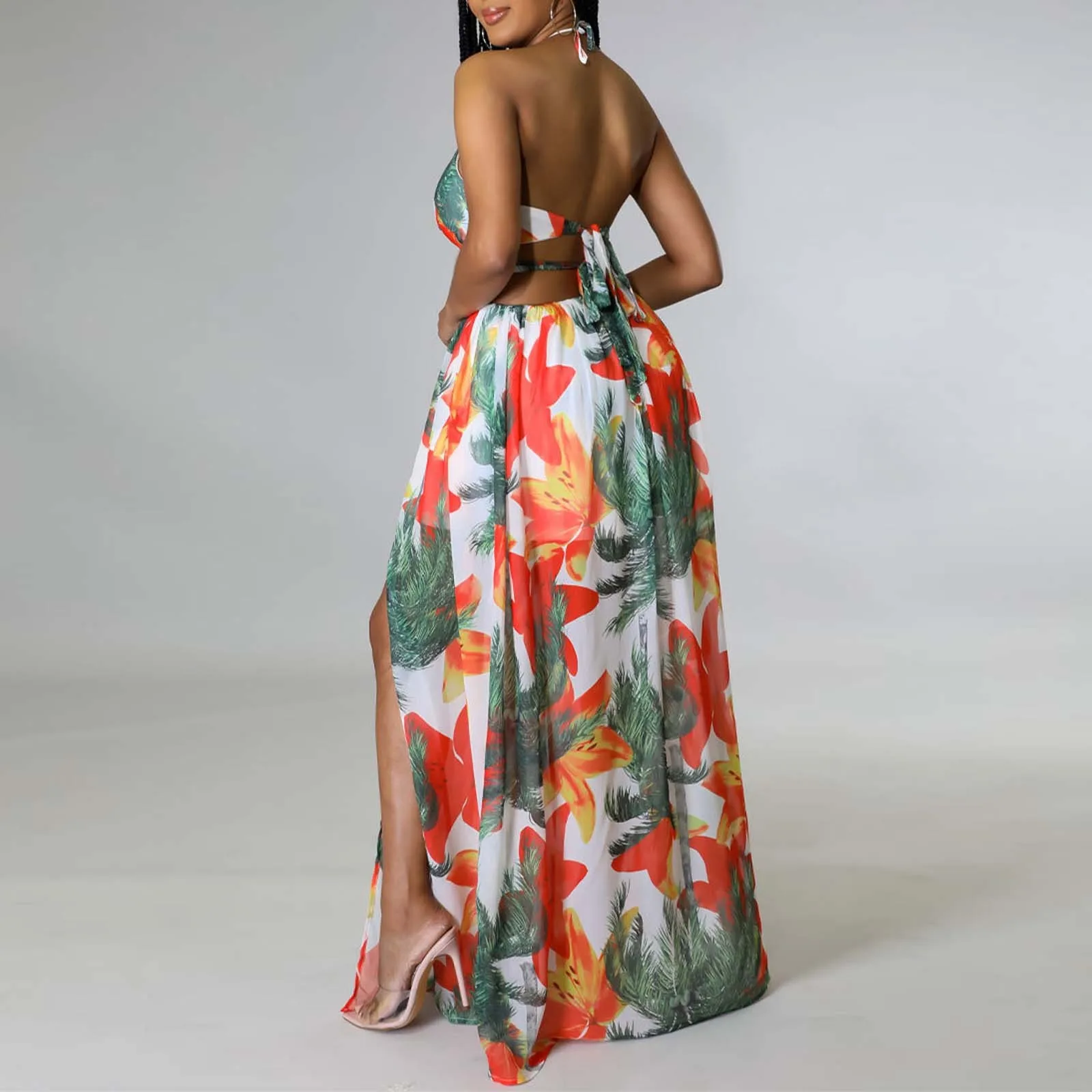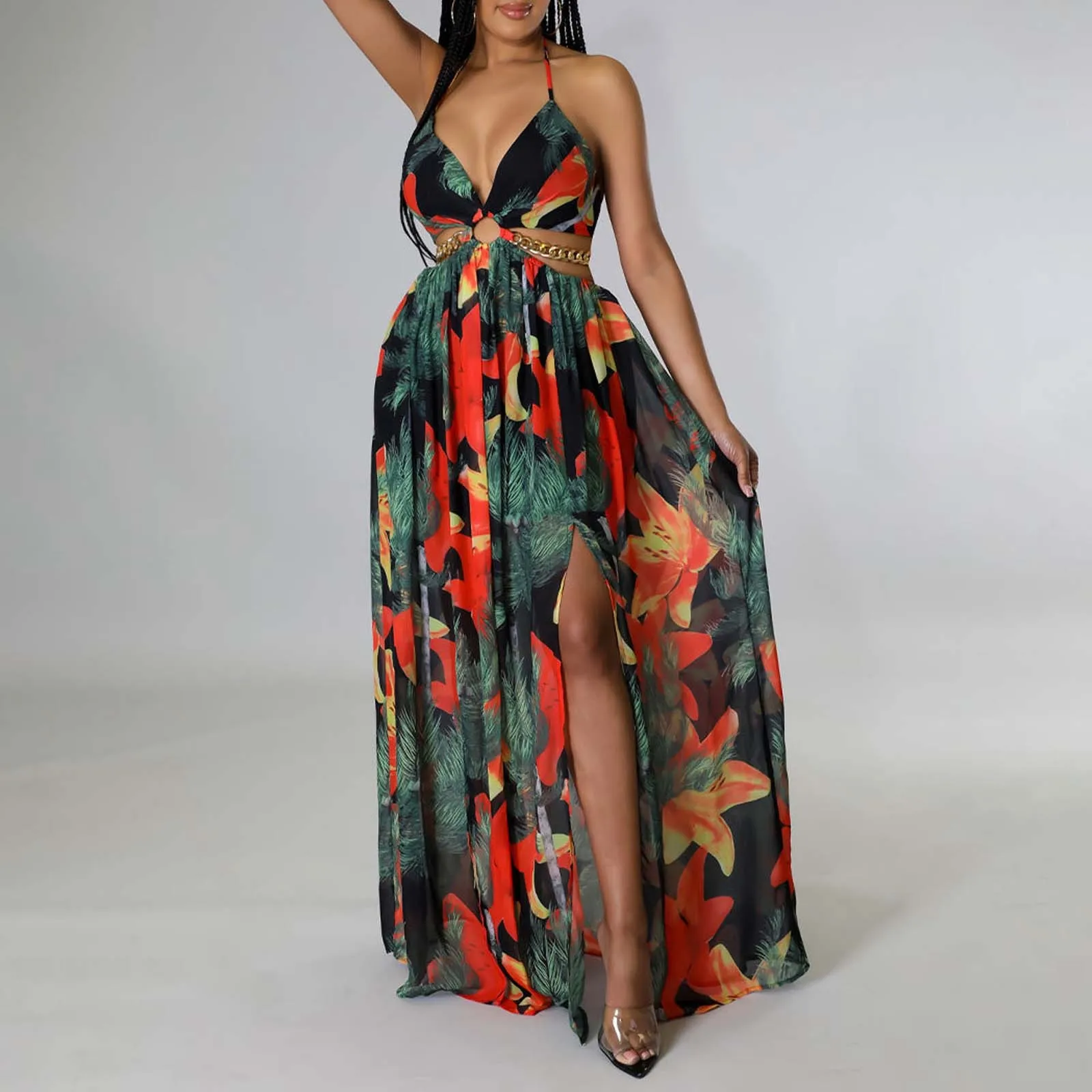 your summer style with our chic floral maxi dress, designed specifically for women who love to flaunt their curves. This dress is not just a piece of clothing; it’s a statement of elegance and confidence. The halterneck design is adjustable, offering you the whether you’re lounging on the beach or attending a summer wedding. Crafted from premium materials that are both comfortable and easy to maintain, this dress promises to be a versatile staple in your wardrobe. With its plus-size options, we to celebrate every body shape, ensuring that everyone can feel beautiful and stylish. the French- charm of this floral maxi dress and make a fashionable statement wherever you go!
